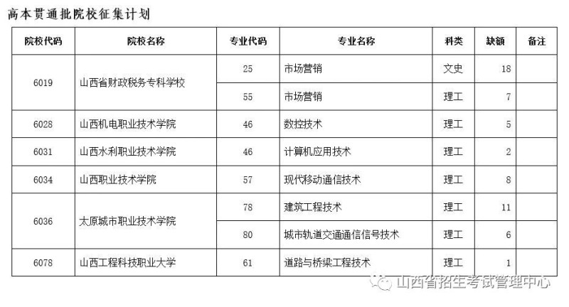目前,我省高本貫通批院校因生源不足或考生不服從專業(yè)調(diào)劑退檔出現(xiàn)缺額?,F(xiàn)予集中公布,公開征集志愿。