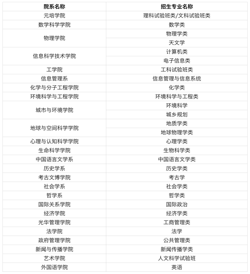 2024年北京大學(xué)“筑夢計劃”招生錄取計劃按教育部核定的高校專項計劃招生數(shù)執(zhí)行。招生專業(yè)如下表所示: