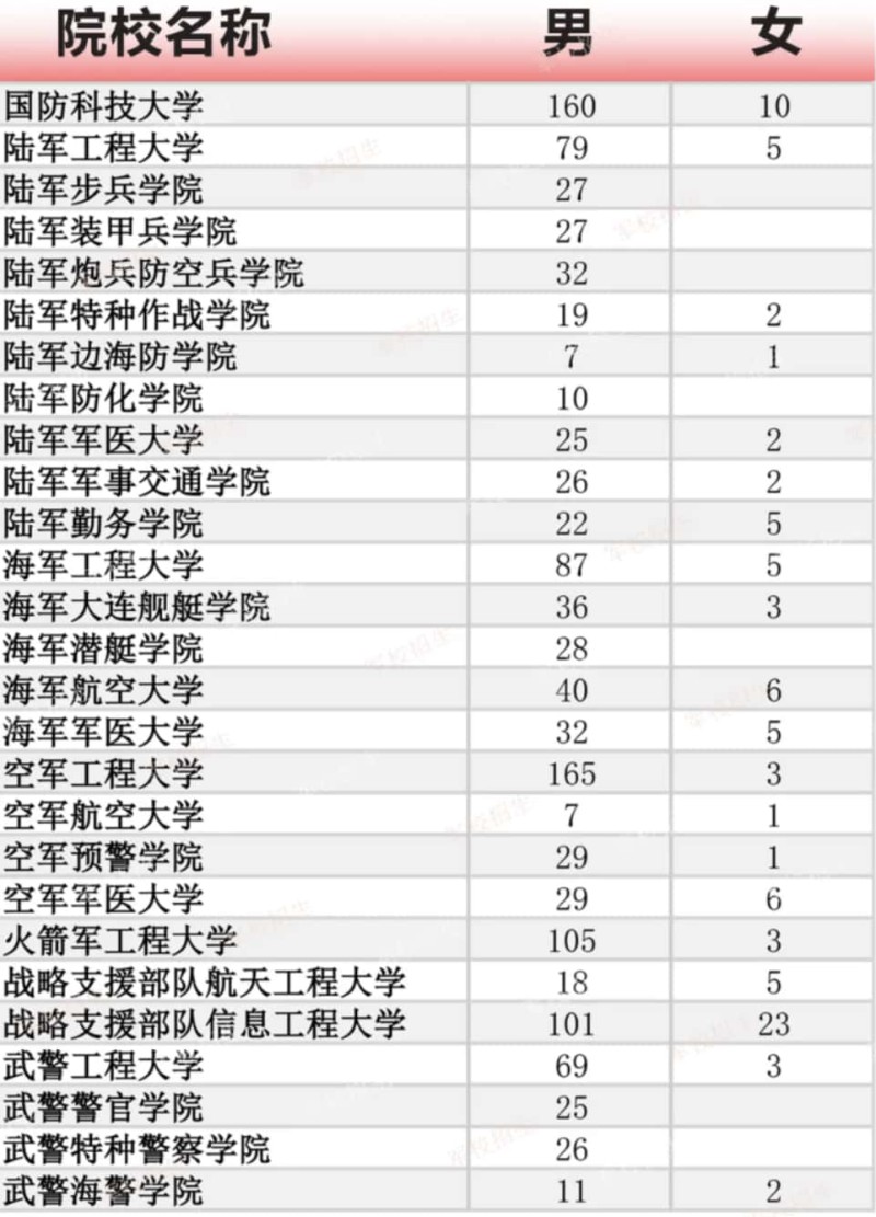 央軍委訓(xùn)練管理部軍事教育局公布了2024年軍隊(duì)院校招生計(jì)劃,在山東共招收人數(shù)如下: