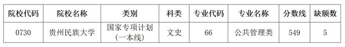 一、國家專項計劃報考資格審核合格且分數(shù)達到549分的文史類未被錄取考生,可根據(jù)附表公布的計劃情況填報志愿,考生填報時請仔細查閱《貴州省2022年高考高校招生專業(yè)目錄》和院校招生章程了解各院校招生專業(yè)的特殊要求。