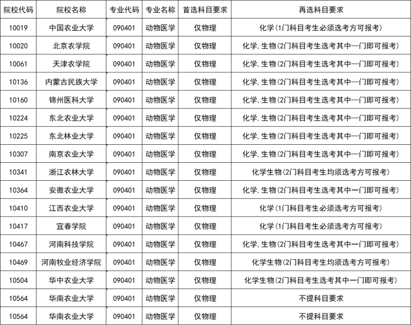 動(dòng)物醫(yī)學(xué)專業(yè)高考報(bào)考選考科目要求