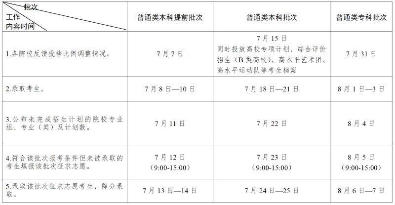 專科批次:8月1日—7日錄取。