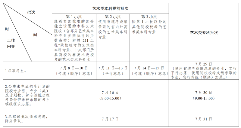本科提前批次:7月8日—17日錄?。ㄆ渲兴囆g(shù)類分為3小批);