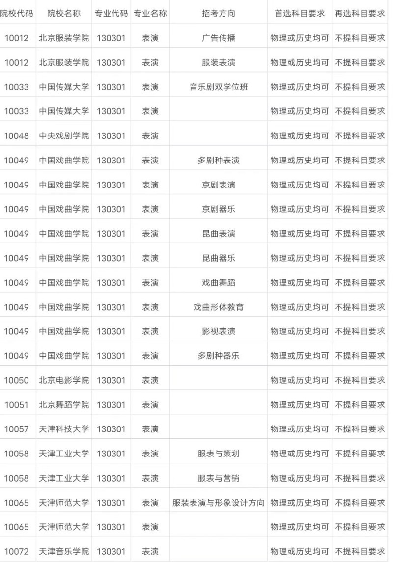 表演專業(yè)大部分高校首選專業(yè)要求物理或歷史,再選科目是物理,也有部分學(xué)校首選科目要求選擇物理,再選科目要求是要考生在政治,化學(xué),地理,生物這些科目中任選其一,方可報(bào)考!部分學(xué)校有自己的要求。