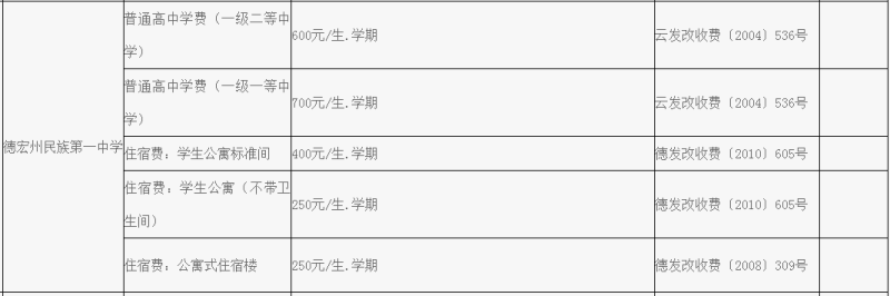 學(xué)費(fèi)收費(fèi)標(biāo)準(zhǔn)如下圖所示(數(shù)據(jù)來源于德宏州政府):