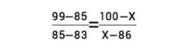 舉例說(shuō)明:假如小王的地理科目原始成績(jī)?yōu)?5分,在當(dāng)年全省參加該科目考試的考生中位于前2.5%,根據(jù)上表,該成績(jī)位列A等級(jí),該等級(jí)的賦分區(qū)間為100-86分。根據(jù)考生原始成績(jī)的分布,可知A等級(jí)的原始分?jǐn)?shù)區(qū)間(假設(shè)為99-83分),那么小王地理科目的賦分成績(jī)(X)可通過(guò)如下公式計(jì)算: