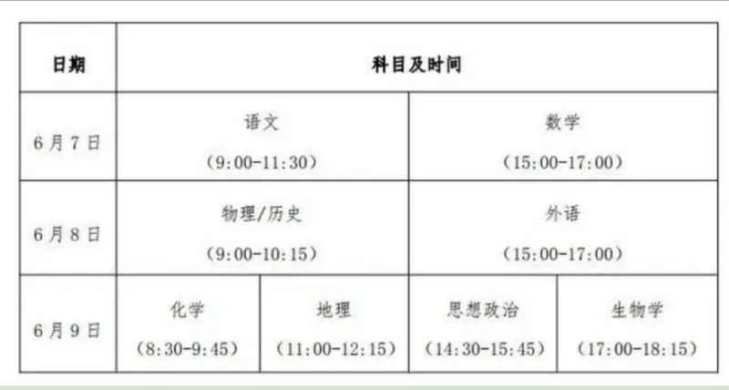 2024年考試時間安排在6月7日—9日。語文科目考試時長為150分鐘,數(shù)學(xué)、外語科目考試時長為120分鐘,選擇性考試科目考試時長均為75分鐘。
