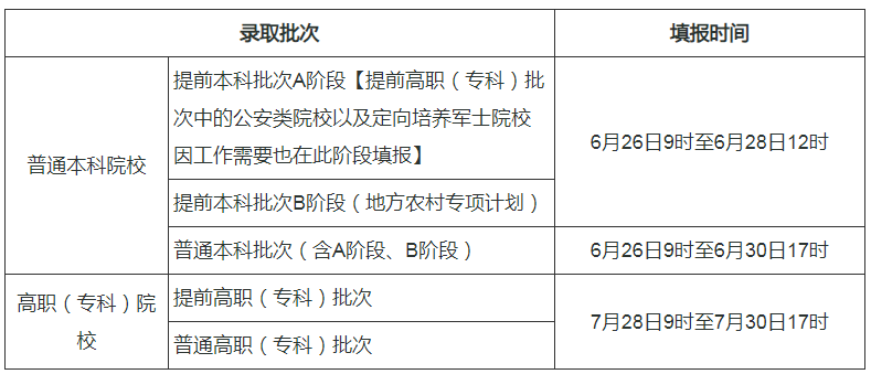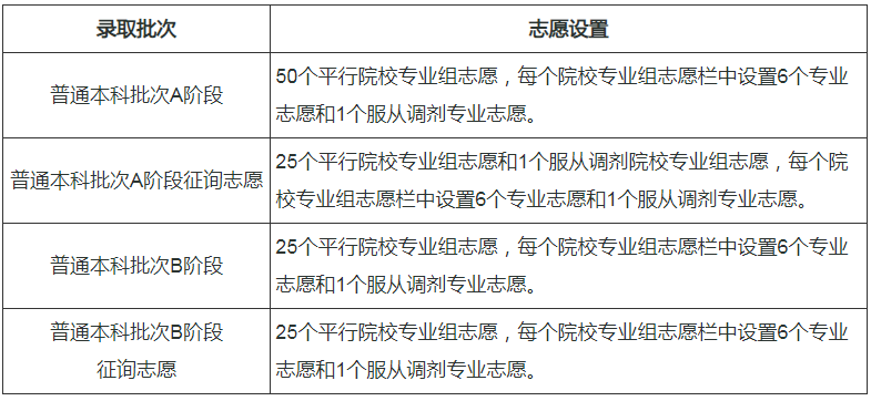 普通本科批次分為A、B兩個階段,均實(shí)行平行志愿投檔方式。