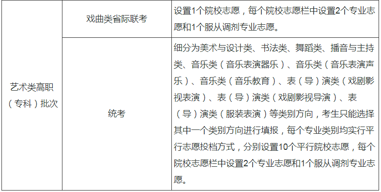 藝術(shù)類高職(??疲┡武浫r,先進(jìn)行戲曲類省際聯(lián)考階段的錄取,再進(jìn)行統(tǒng)考階段的錄?。惑w育類高職(??疲┡闻c藝術(shù)類高職(??疲┡蔚匿浫」ぷ魍瑫r進(jìn)行,實(shí)施平行志愿院校的錄取。
